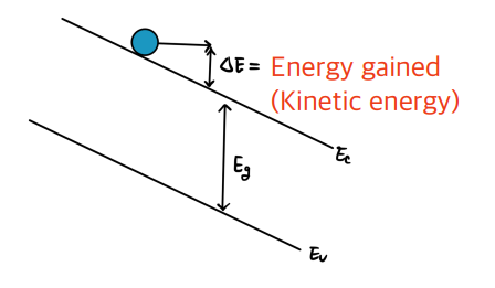 결국 운동에너지는 valence band의 전자를 conduction band로 끌어올려주는 역할이므로